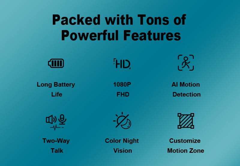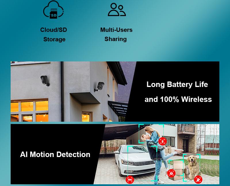 【Smart Motion Detection and AI Recognition】The rechargeable wireless outdoor security camera utilizes AI smart sensors, which can recognize people, pets, vehicles and package drop-offs. The security cameras wireless outdoor use an infrared sensor, it will detect motion and send notifications to your mobile phone in real-time.